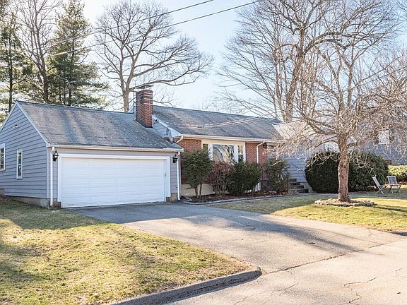 Sprawling sunny ranch with oversized two car garage, in a lovely leafy neighborhood on a quiet street close to the Winchester Country Club! The flexible floor plan features an expansive living room w/ fireplace open to dining room with built-in cabinet; kitchen semi open to a family/TV/playroom with laundry; two bedrooms, one with ensuite 1/2 bath; and a third room that works equally well as 3rd bedroom or office. The lower level offers a large semi finished space with it's own entrance and a 2022 bathroom w/ shower. Many accessible features including single floor living, a family bath with step-in shower and separate tub, 1/2 bath in the primary bedroom, and wide door openings. Hardwood floors, great light, cozy sunporch. Huge level yard with storage shed. Move in ready, but also a fabulous opportunity to create the house of your dreams - remodel the kitchen & baths or add a second floor!