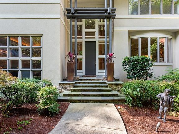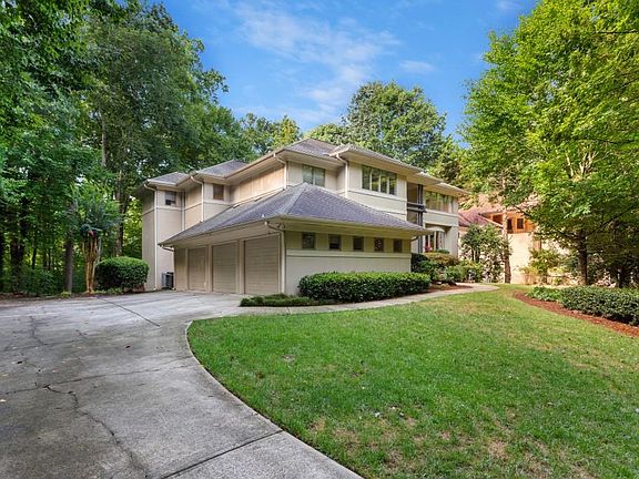 This unique architect designed home is in a Private Community. Located at the back of Grogans Bluff, Bentwater only has 16 estate homes. This contemporary house is hard coat stucco and sits on 1.5 acres to provide complete privacy. Perfect for entertaining or relaxing after a long day, there are several different rooms to meet those needs. With an open floorplan, it still provides distinct rooms on the main floor. Entering the grand two story foyer, you can see the main level is anchored by the living room, which is surrounded by a 12+ seating dining room, a game room complete with pool table, and a cozy den. The kitchen has Subzero and Wolf appliances, including double ovens and a warming drawer. With sleek designer granite and a unique tile backsplash, its modern finishes provide a designer feel for any chef. There is a walk in pantry and plenty of cabinets. The butler's pantry leads to the oversized dining room with dramatic curved, vaulted ceiling. The other side of the kitchen has an eat in area and large private office. There are four bedrooms and three bathrooms upstairs. The first bedroom is the oversized primary suite with serene view of the backyard. It includes a recently renovated, luxurious primary bathroom with heated floors and oversized walk in closet with complete closet system. The laundry room connects to the primary suite and leads back to the hallway. There is a guest room with en suite bathroom on the front of the home. There are two more secondary bedrooms connected with a jack and jill bathroom on the other side of the second floor. This split bedroom floorplan creates a landing with sweeping views of the foyer and living room below. The finished basement has the fifth bedroom, full bath, large entertaining space, and generous unfinished area. Currently, the owner has a workshop in the unfinished space. This area could easily be finished and provide a 6th bedroom, 5th bath, and more additional living space or office. Plenty of finished storage space in the basement as well. The back of the house has two sets of French doors on the main floor leading to the extensive deck which opens to wooded backyard. There is a flat backyard surrounded by nature. Access to the three car garage is off the kitchen. There is a long driveway leading to the home, which provides even more privacy. The water heater was installed in 2020 and main floor HVAC was installed in Aug 2021. The wooded front yard and backyard make it ideal for the Buyer looking for a serene setting, while still having access to everything Atlanta has to offer. The surrounding area offers dining, shopping, and entertainment. There is the option to join Grogans Bluff community through a Swim/Tennis or Social Membership. This recently renovated executive home is close to the interstate for a quick drive to the airport, Buckhead, Midtown, or Downtown. This home was on HOLD while owners installed new carpet upstairs and updated tile in jack and jill bathroom.