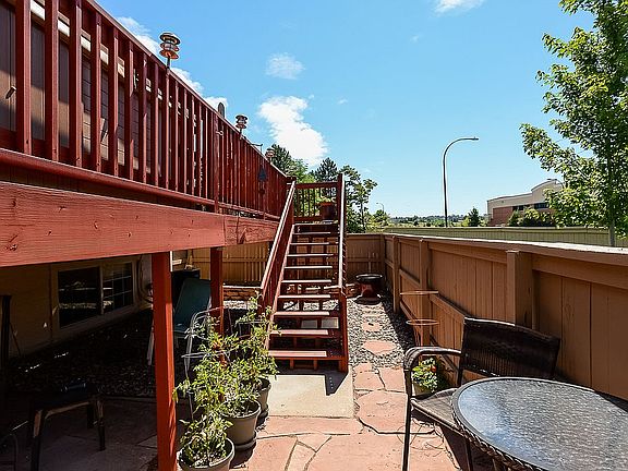 Enjoy the convenience of low maintenance ranch style patio home living! Backing and siding to HOA maintained greenbelts, this du-plex style home has great views to the south and west. Relax and watch the sun set from the extended redwood deck with a retractable awning. Hot tub included. The fenced yard is great for planting a small garden or provides a place for Fido to play! It’s easy to find a shady retreat on the flagstone patio under the expansive deck. This beautifully maintained, open-concept design features newer laminate maple hardwood floors throughout the dining and living areas. Vaulted ceilings, big windows including a bay window, a TV niche and a cozy gas fireplace are wonderful benefits of the great room. Maple cabinets with pullout drawers, slab granite counter-tops and tile floors grace the spacious kitchen. All appliances are included, and the dishwasher and microwave are 2013. You will find extra space in the pantry area. A dine-in nook provides a secondary option for meals. Wow! There is plenty of room in the spacious vaulted master suite with dual closets. An attached bathroom has two sinks plus an over-sized walk-in shower! A second main floor bedroom can double as an office. An additional main floor bathroom and laundry room are just steps away. Enjoy more space in the finished garden level basement with a big family/recreation room, a third bedroom and a full bathroom. There is a huge storage room in the basement. Other notable features include lights on dimmers, a new sump pump, Kenmore water softener (as is), extra shelving in the over-sized attached garage and a fresh coat of exterior paint has just been completed by the HOA.