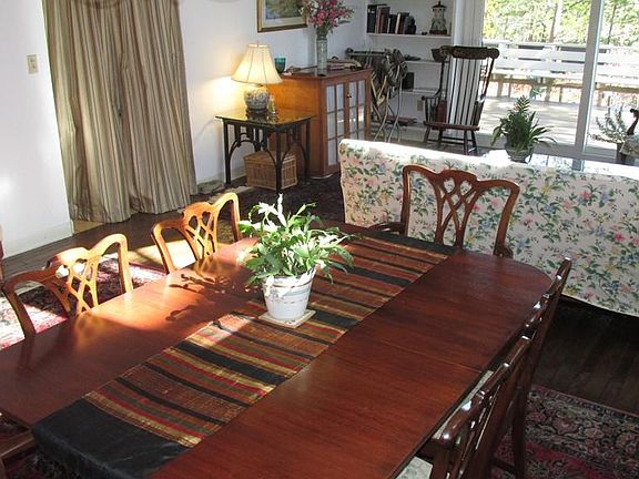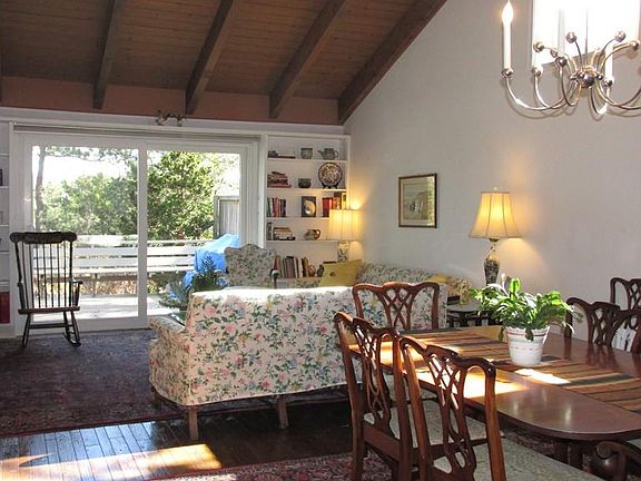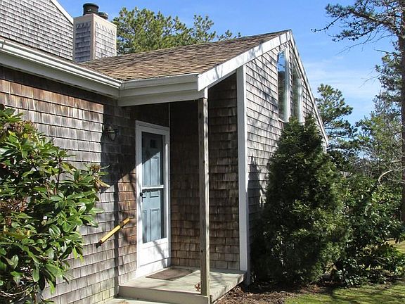 FalmouthPort! Single floor living but with extra room for family and friends. Two bedrooms on main level with expansive great room with sliders to deck, eat-in kitchen with fireplace and sliders to deck, two bedrooms including master with ensuite . Extra bedroom in lower level, full bath, and two more bonus rooms. Great storage. Waterfront community boasts nice amenities: 2 docks, heated pool, clubhouse, 4 tennis courts, hiking trail.