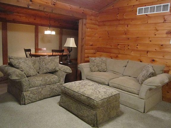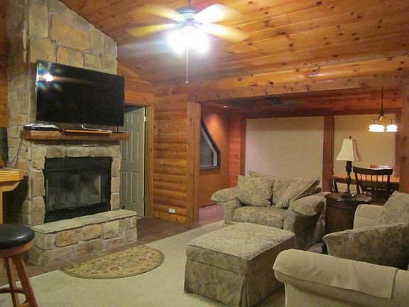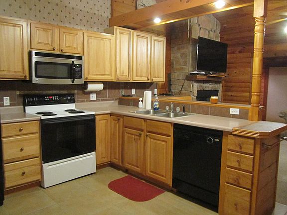 Move-in ready log cabin located on .56 of a acre with a detached garage. This home features an open kitchen/living area with woodburning fireplace, kitchen bar, separate dining area with all appliances and two separate washer/dryer hookup areas. Split two bedrooms each with separate baths and an oversized covered deck with slight view of Table Rock Lake. Perfect for a lake retreat!!!