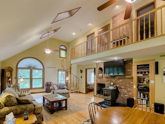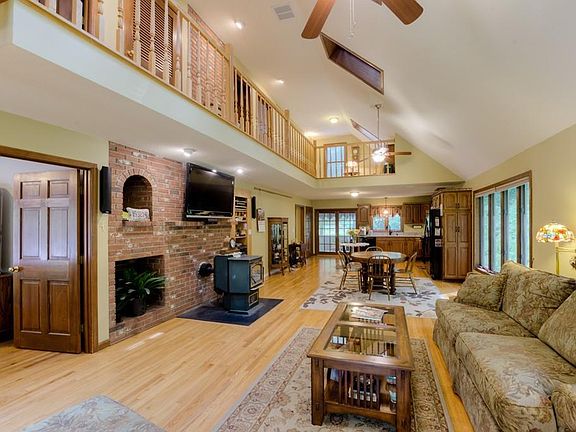 Natural private setting describes this Contemporary Colonial set on over 2 acres. If you're looking for privacy near the Wilbraham/Hampden line you will love this home. Surrounded by woods and perennial gardens, come home at the end of the day and listen to the birds and just relax. Inside you will love the open floor plan. Large Great room with vaulted ceilings, skylights, hardwood floors, pellet stove for additional heat source and second entry to second floor with spiral staircase. Kitchen with granite countertops and dining area all open to Great Room. Nice 3 season sunroom to sit and enjoy the backyard. Spacious first floor Master Bedroom suite with walk in closet, full bathroom with soaking tub and shower stall. Guest bath with laundry room. 2nd floor with reading loft, and 2 bedrooms with jack n jill bathroom. 2 car oversized garage with storage. What more could you ask for? Call for a private showing today.