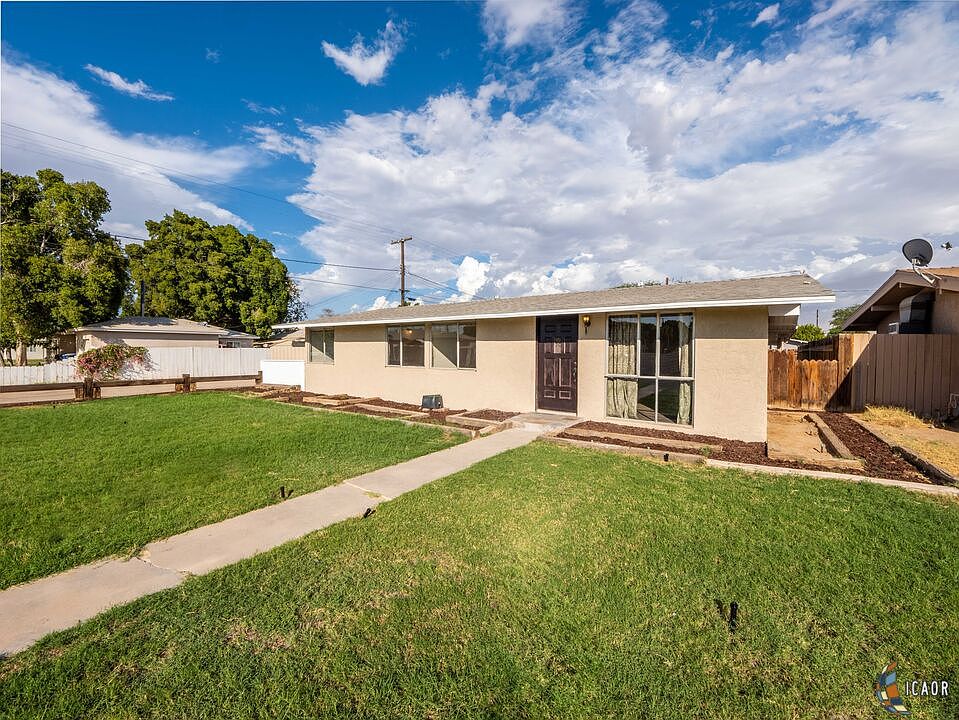 This property has been recently renovated, all the work done for you and still under $300,000! In this market that is hard to find! New laminate flooring throughout. Updated bathrooms. Completely new paint including the kitchen cabinets. New front sprinkler system and spruced up curb appeal. Has a great big back yard with a cute patio and storage shed. Corner lot with alley access in a well established Brawley neighborhood, walkable distance from schools, church and shopping centers. Contact your favorite Realtor for a a tour!