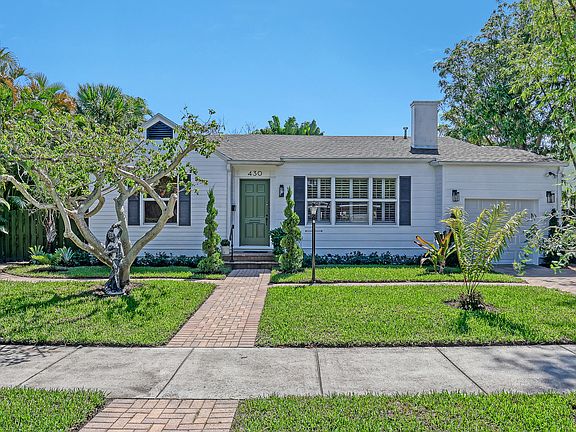 Located in the Historic District of Old Northwood this Modern Farmhouse style home is located one block from the Intracoastal, minutes to the beach, the Breakers, Worth Avenue, the Palm Beach Airport, Downtown & walking distance to the charming Northwood Road with its famous restaurants & boutiques. This one of a kind home, located on 1 1/2 lot has been almost totally renovated featuring a new white kitchen with quartz counters, travertine floors & new appliances 2023, all 3 bathrooms were updated, the original hardwood floors have been sanded and refinished 2024, impact windows 2017 except for the original french doors & side windows, impact garage door 2024, pool/spa refinished with new equipment 2024, roof 2021. See supplement The landscaping was totally redesigned with new irrigation system and new well 2024. Included in the square footage is an adjacent guest house that will generate great revenue. This guest house has a private entrance and is fully equipped with a kitchen, living room & dining room/office, bedroom & bathroom with amazing views of the pool and garden. This charming home can be purchased fully furnished. Don't miss this rare opportunity to own your Modern Farmhouse home in an urban setting.