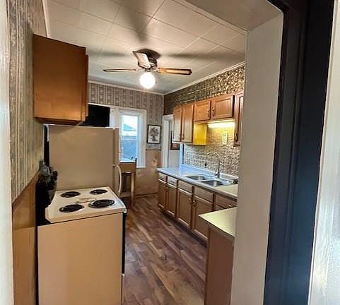 Cozy three-bedroom 1 bath home in quiet subdivision. The renovation process has begun. The hardwood floors have been sanded and refinished. Some walls removed and replaced, sheetrocked, textured and repainted. Ceilings in the family room are 9'. Bathroom has had new tile floors, new tile tub surround, toilet and shower stand for a clawfoot tub. Two bedrooms on the main level have been repainted. Kitchen is ready with tin backsplash and all appliances. The upstairs has a large primary bedroom with a sitting room/office on one end. The home has gas forced air heat and central heat. The basement is a walkout and partially finish but waiting for your ideas. It walks out to a nice private backyard with easy access to the detached garage and canopyed parking space. This home is very liveable and waiting for you to take it to the next level. Most of the big ticket items have been done.