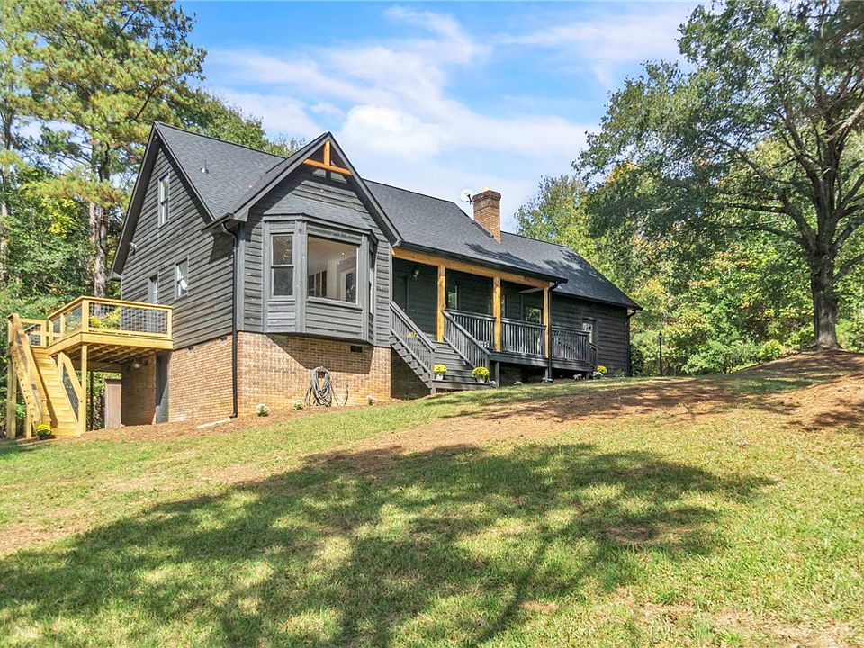 Welcome to your NEWLY REMODELED LAKE HOUSE in Madison Shores by Lake Hartwell! Just 10min to Toccoa, GA, 25min from Seneca, SC & only 35min from Clemson University. This cozy and inviting 4bd, 2.5ba, 2,400 sq ft home sits on 1.32 acres with NO HOA and has all the original character with brand new modern touches. The master, living room, kitchen, laundry room, and powder room are all on the main level. The master suite has been completely remodeled with new floors and a brand new bathroom. The kitchen has received new Quartz counter tops, floors, light fixtures, backsplash and custom cabinetry. Take a step further from the living room into the great room which can be transformed into a play room, man cave, or additional living space with new carpet just installed! There are three additional bedrooms upstairs, a completely remodeled full-size bath, new flooring throughout the top floor and an additional split unit that has been installed. On the exterior, the front porch has been remodeled with cedar wood accents added in the gables and on the front columns. The large side deck is brand new and makes for easy access down to the added fire pit. You can enjoy the view of the pond from the deck which intersects the lower back corner of the property. The land has also been professionally underbrushed as well. Lake Hartwell is just around the corner (.2 miles away) with the Madison Shores private boat ramp access and multiple recreation areas you can access by boat within a mile! (Upgrades: New Roof, Gutters & Downspouts. New HVAC ran to the upper level, dual thermostat controls, split in family room. Electrical updates including new lighting, all new GFCI outlets, ceiling fans. New back deck, updated front porch, new flooring, lighting and plumbing upgrades. All new paint Sherwin Williams paint throughout entire inside and outside, just too many things to list). Note: Property is owned by SC & GA licensed Realtor. Schedule your private showing through showing times.