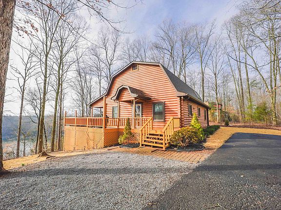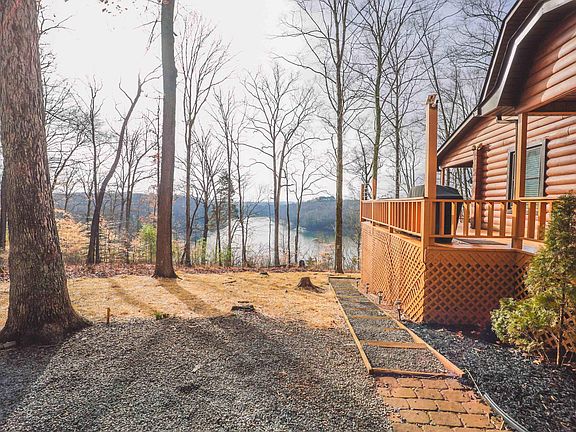 Wonderful Log Cabin with breathtaking year-round view of the Beautiful Lake Cumberland located in gated Captain's Point is now available! Property contains 0.75 acre, m/l, is mostly wooded & bounds the Corps of Engineer property adjacent to the lake. The home features mostly wood flooring & ceilings, log walls, & lots of windows on all 3 levels to view the lake. The main level features a great room w/vaulted ceiling, wood burning fireplace, kitchen w/oversized bar, living room, 2 bedrooms, full bath, central HVAC & lake view; + access to an enclosed sunroom w/room for extra dining & relaxing; plus a deck w/a hot tub. Upstairs there is a large bedroom, full bath, skylights, double closets, lakeview, & wood flooring. Basement has sitting area, 2 bedrooms, full bath, pine walls & ceiling, separate split heating/cooling unit, & lakeview. Lower level has access to a covered porch & firepit overlooking the Lake. Home been remodeled recently making it move-in ready. Your investment is protected by building/use restrictions & HOA w/very reasonable maintenance dues. Ample parking, room to build an unattached garage, & great shade trees makes this lake home something special.