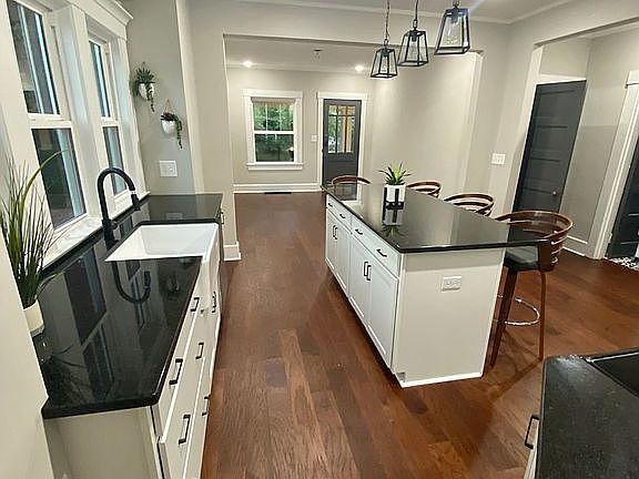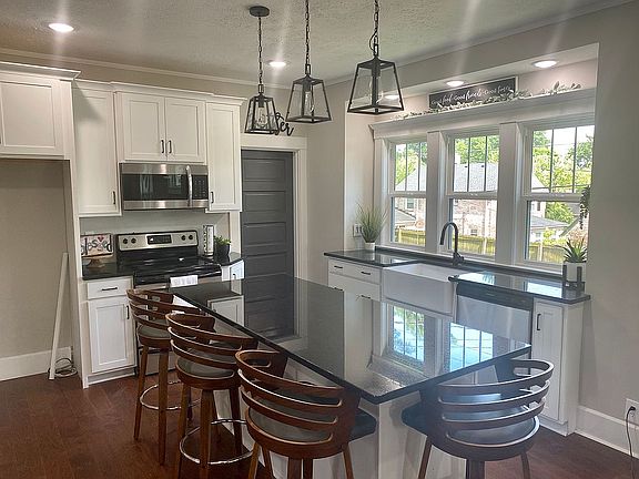 Super cute, super star! This Craftsman Bungalow was brought into the 21st century just last year. So not only is it adorable it also has a new roof, windows, siding, and newer HVAC. Now the pretty parts! The kitchen is bright with tall white cabinetry, a farmhouse porcelain sink, massive island/breakfast bar with storage, and hipster pendant lights. And check out the laundry/pantry room. Excellent! The living room and kitchen blend to form an open floor plan highlighted by the original entry door and a bonus transom window. Two brand magazine worthy bathrooms are just a pleasure and a great value with tile walk in shower, a tub, ship lath accented with tile and contrasting tile floors. So much fun. The middle bedroom is small but mighty with built in armoire and shared, walkthrough, outfitted closet. The owners suite is at the back of the house with a new barn door separating them. A bonus enclosed porch adds creativity and extra space. The outside is ready for urban celebrations with a concrete patio, wood party deck, small yard, and a 2-car garage. The house is set back from the street and perched on a small hill. The bungalow porch may be the best spot in the house.
