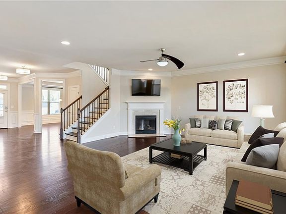 This home is nearly new, located on peaceful street with no thru traffic, and has a truly hard-to-find lot where the front and back yards are level and the home has a basement! Spend time with friends on the main level deck or enjoy a morning coffee on the private owners suite outdoor deck. Both decks feature a really nice wooded view. Large ground level covered patio. Main level guest bedroom with full bath. Upper level guest bedrooms feature private or Jack and Jill baths. Alpharetta address and Forsyth county taxes. Great schools, too! See today!