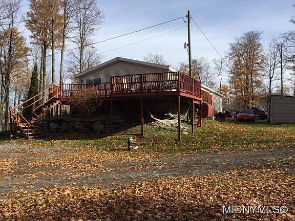 Peace awaits you at this manufactured home nestled on 5.2Ac,w/ wraparound deck offering room to entertain or relax. The home has 3bdrs,2.5 baths,LR,FR,Dining,Master Suite w/ whirlpool tub and more. Heated w/ a wood furnace,Oil is avail.Generator Avail. Lg detached garage has room for everything.