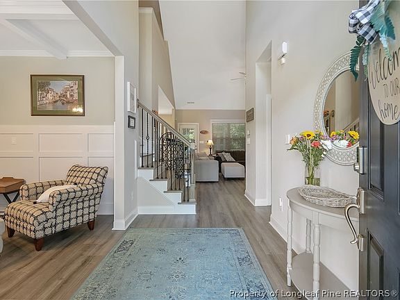 Meticulously maintained 4BR 3BA 2800SF+ home on .52 acres tucked away in Murray Hill. Built in 2021 by custom builder JSJ Builders, Inc, this home features high end finishes such as crown molding, vaulted & coffered ceilings, & gorgeous hardwood laminate floors. Custom kitchen w/beautiful cabinetry, granite countertops, SS appliances & large kitchen island & breakfast bar great for entertaining. Formal dining room & generous open concept living room, kitchen, & dining area. Carpeted 1st floor owner suite w/full bath boasts a tiled walk-in shower, garden tub & DBL sink vanity. Additional BR & full bath downstairs. Upstairs features a loft, large rec room w/closet, 2 additional BR & full bathroom. Out back offers a private screened in porch perfect for enjoying morning coffee or an evening glass of wine. Generous private fenced backyard. So much potential w/an easy commute to Fort Liberty, minutes from downtown. Schedule your appointment now before this beautifully built home slips away!