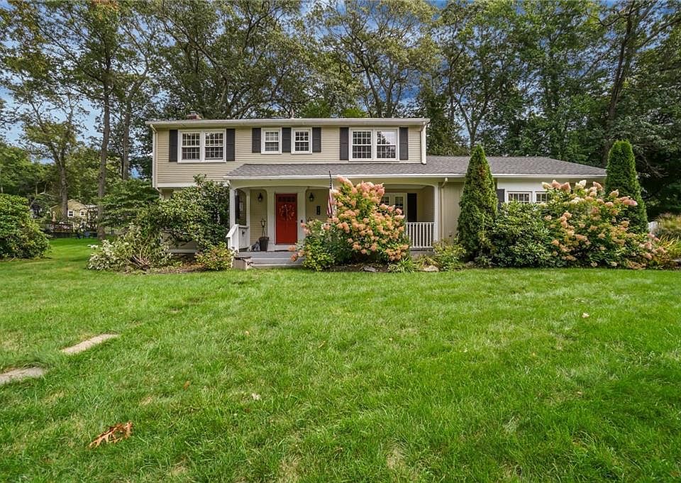 Welcoming colonial home offers a timeless blend of charm and functionality. With four spacious bedrooms and 2.5 baths, it provides ample space for both family living and guests. The hardwood floors throughout add warmth and sophistication to each room, while maintaining a seamless flow throughout the house. One of the standout features is the flexible floor plan including the finished basement: a perfect blend of additional finished space with unfinished areas for storage. This home offers versatility to suit a variety of lifestyles and needs—whether you're looking for a home office, formal living spaces, or informal areas for relaxation and entertainment. Enjoy the outdoors from the inviting front porch or rear deck overlooking large backyard which backs up to woods for privacy, large shed and fenced dog run! Ideal spot for barbecues, entertaining, or simply unwinding after a long day. The roof and mechanicals have been updated in recent years. The convenient neighborhood of Cowesett is another attractive element, providing easy access to local amenities, schools, highway, marinas, shopping and dining in nearby East Greenwich, and Goddard Park, all just minutes away! Overall, this home combines classic appeal with modern-day comfort, making it a wonderful place to call home.