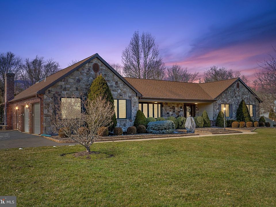 This unique and meticulously maintained sprawling expanded ranch home offers comfort and space on approximate 1.36 acres. Step into luxury as you enter the front oversized foyer. The massive living room welcomes you with warm and inviting features surrounded by a beautiful fireplace creating the perfect ambiance when entertaining family and friends. The formal dining room is perfect for holidays and special occasions with the bay window overlooking the beautiful grounds. Immerse yourself in the spectacular kitchen featuring granite countertops, maple cabinetry, custom tile backsplash, a built-in microwave, convection oven and a second oven with cooktop. A large island with pendant lighting and separate dining area for casual meals. Step down into the cozy family room featuring a cathedral ceiling, stone fireplace, built-ins and skylights perfect for family movie nights. Off the family room is a magnificent sunroom surrounded on three sides by sliding glass doors. A retreat where you can unwind and enjoy the outdoors anytime of the year. The primary suite with an en-suite bathroom offers an expanded seamless glass shower, double vanity and a separate vanity with built-ins. There are two other very nice size bedrooms with plenty of closet space and a full bath with tub/shower. Also featured is a powder room and a nice size laundry room with outside access. The backyard space is your own private oasis. Enjoy alfresco dining on the patio with a retractable awing. Follow the beautiful paver walkway to the lovely gazebo which overlooks the grounds. The featured gem is your private in-ground heated pool with spa all surrounded by decorative fencing. There is a two car garage with inside access, full unfinished basement and a walk-up attic for additional storage. This special home offers the perfect blend of privacy and convenience with major highways close by. Located in the award winning Council Rock School District. Schedule your tour today!