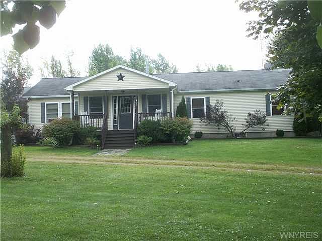 Ranch home on 3.19 acres in Arcade. Features 2+ bedrooms, 2.5 bathrooms, master suite with whirlpool tub with a separate shower. Formal dining room, library-(can be changed back to a bedroom), captivating living room with fireplace, remodeled kitchen (2013), appliances, first floor laundry and partially finished basement. Barn, 4 sheds, 2 car 24x24 attached garage(2000), greenhouse (2014), perennial flower gardens and a beautiful pond. Arcade electric. Addition with gas fireplace(2006).Pond with limestone added around edge in 2012.