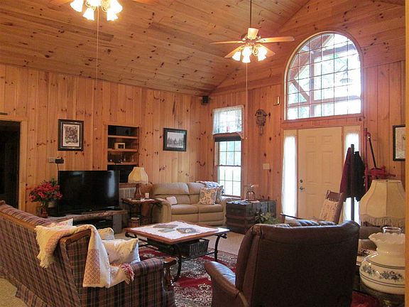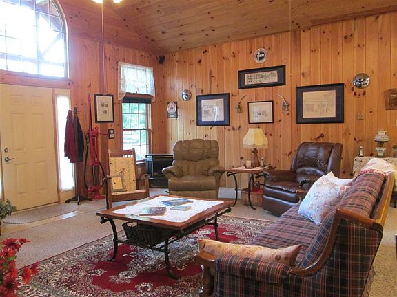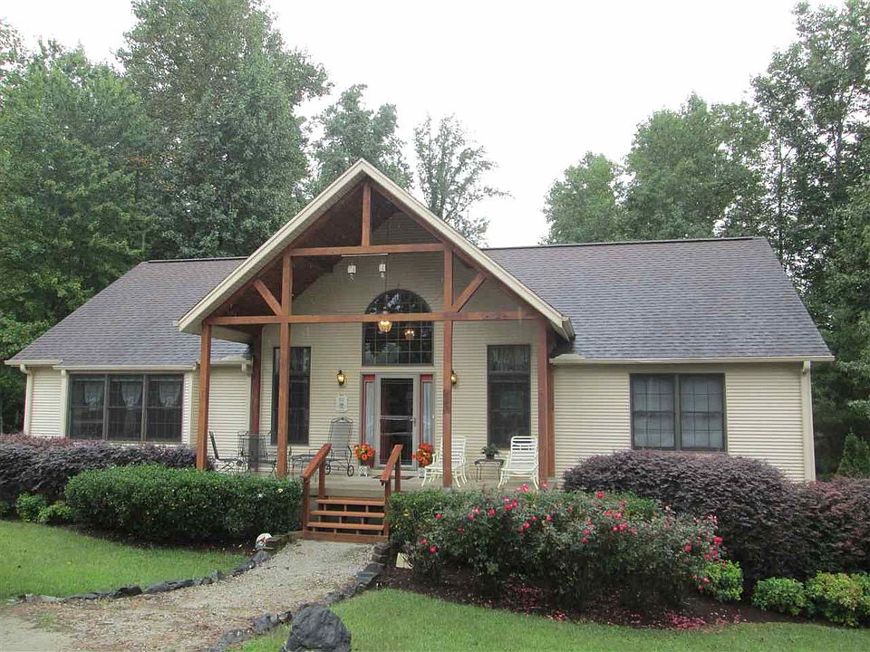 Escape to this magical mountain lake retreat. Step into an open living space with a vaulted wood ceiling. Dining area has a large built in dish/china display. The kitchen offers lots of work space including island with gas stove and bar with stools. All appliances convey including washer and dryer. This split floor plan includes a large master suite with a sitting area and the master bath has double sinks, a jetted tub, separate shower and walk-in closet. Basement has finished room , heated and cooled. There is also a work shop and storage galore. The garage is in the basement, but there is a circular drive out front. Lots of parking space. The property is lake front across the road. Back of property back up to woods. Paddle boat included. Boat ramp is right beside this lot and there is canoe and kayak storage. Can add a dock.