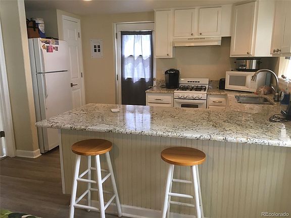 Darling completely updated home located in the charming small town of Kiowa! This home sits on TWO CITY LOTS! This super cute ranch style home features upgrades such as tank less water heater, newer windows and LVP wood flooring throughout. The kitchen offers a huge island, stunning granite countertops and all appliances are included! The home has two heat pumps that both heat and cool the home efficiently. One of the heat pump units is brand new. The large yard has a garden shed and is fenced for your pets! The home is located less than a block from the elementary school and within walking distance to downtown Kiowa and restaurants, shops and parks. This home is eligible for USDA 100% financing! All measurements are approximate.