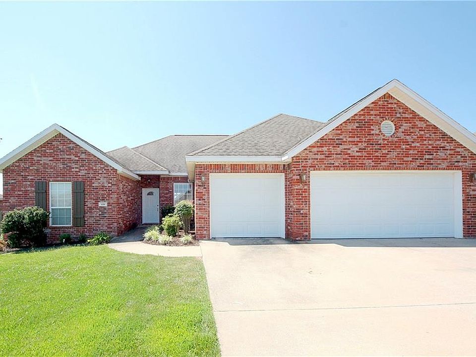 Ready Set Go - New paint, carpet. Features - 4 bedrooms near clubhouse/pool, 3 car garage, flat yard with deck. Open floor plan. Very open split bedroom plan. Master suite has private patio. Built by Mastercraft. Bentonville schools close by, walk to park and fish. Agent owned: We can make this work, will consider lease purchase.