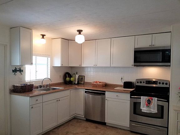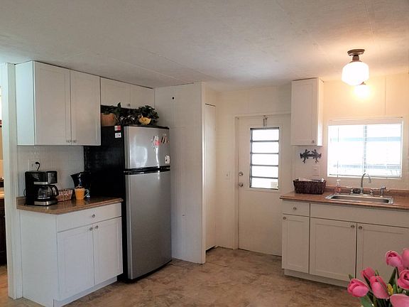 JUST LISTED PARTIALLY FURNISHED- $19,995 This home features a large front enclosed lanai with a ceiling fan. The living room is spacious and it opens to the dining room. The floor has been redone in 3/4 plywood and vinyl flooring. The large kitchen has new cabinets, countertops and appliances. The kitchen also has a pantry for extra storage. Guest bath has newer vanity, sink, faucet and light fixture with a tub shower combo. Guest bedroom is very roomy and has bamboo hardwood floors with an open closet. Master bedroom has an extra-large double door closet and an attached bathroom with a step-in shower. The home has light beachy colors. Large carport and storage shed with washer and dryer. Beautiful back deck with an extra-large storage shed and no neighbors behind you. Rubber membrane roof that was redone 3 years ago. Newer AC in 2015 Very nice solid home. ACT FAST & CALL TODAY!! Don't forget to ask about the FINANCING available on this home. Colony Cove is an age qualified (55+) five-star resort community of manufactured / mobile homes. The "Cove" boasts 5 clubhouses, 5 heated pools, a riverfront pavilion and private fishing pier, a private marina, a fenced dog park (very pet friendly), tennis, shuffleboard, new pickleball courts, 2 new fitness rooms, 24-hour patrol, clubs for every interest, and much more. There are daily planned activities throughout the park. Bottom line, if you get bored here, it's your own fault!! The lot rent in Colony Cove is based on the homes' location. While the monthly rent may not be the lowest around, it's by far the best value for the money. Not only does the monthly rent cover all of the amenities of the community listed above, it also covers almost all other monthly expenses such as; water, sewer, trash pickup, all property taxes, lawn maintenance. . .pretty much every monthly expense except electricity and internet. The current lot rent on this home is estimated at per $803.66 month.
