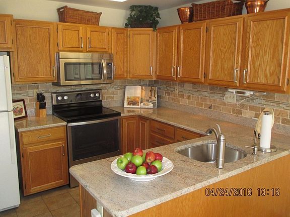 Lovely Pine Crest townhome with all the exterior stucco remediated down to the new wood sheathing (docs on Trend) covered with top of the line vinyl siding, all approved according to the 55 page specification rules set by an engineer for the Association. Exceptionally clean, improved and very well maintained with front garage and off street parking, rear deck with retractable awning, backing into the fairway to hole #3 at Pinecrest G.C. Attractive foyer entry leads to a formal dining room with shelving, a step down Living/Family room with gas fireplace and plenty of natural light, and a remodeled kitchen with granite counters, natural stone backsplash and all new appliances, including range, dishwasher and microwave. Plenty of cabnetry, plus a roomy eating area with slider doors out to a deck. There is an elegant main bedroom suite with it's own five piece bath including stall shower, soaking tub and two vanity sinks, one with a make up area. The upper level laundry room is a convenient step saver. Two additional bedrooms, plus a beautiful hall bath with vanity sink. Unfinished lower level with plenty of space for storage and easily finishable. Roofing system recently replaced, covered by the Association....Exterior of the home is now superior to when originally built.