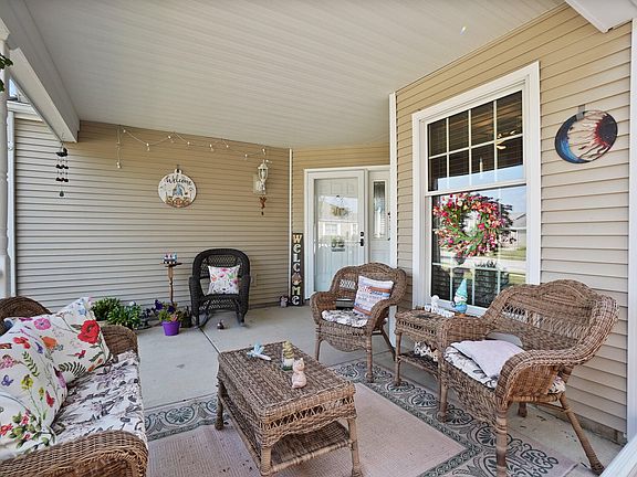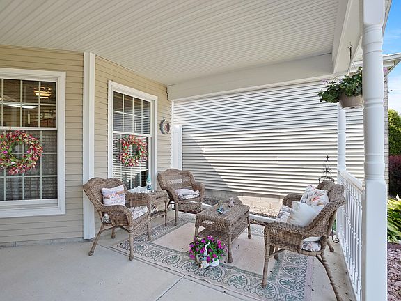 MOVE RIGHT IN to this maintenance free patio home! You'll be greeted with an oversized covered porch to sit and sip your coffee on. 3 bedrooms with 2 FULL bathrooms. All of the important work has been done for you! Roof, skylights, furnace, A/C, flooring all done in last 2 years. Both bathroom refreshed in the last 2 years as well. In 2023 there was an addition of a totally stick built sun room with it's own heating/cooling system so it can be enjoyed year round. Huge great room gives you space to use any way you'd like. Make a formal dining area, reading nook, or craft area. All appliances (newer) stay in this bright eat in kitchen. 3 generous sized bedrooms including a primary bedroom with attached full bathroom and walk in closet with built in vanity. 2 additional bedrooms and full bathroom on the other side of this great split design. Main floor laundry room (NEW washer and dryer to stay) The 2 1/2 car attached garage has additional storage space above already equip with flooring and shelving. The fenced in backyard is landscaped to perfection including a shed for your extra outdoor things. On the largest lot (fenced in!) in the neighborhood, you get the best of both quiet and low maintenance, but with lots of space to roam. Low taxes, close to town and an easy commute in any direction, this is the perfect spot to call home.