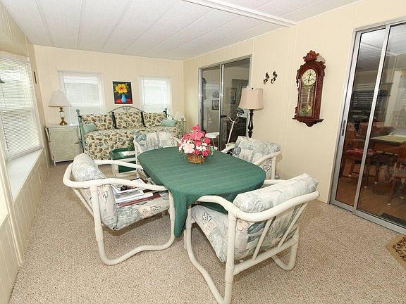 Well Maintained home in move-in condition. Home offers a beautiful heated and cooled all-purpose front room. Spacious bedrooms and walk in closets. There is a carport and large 12X12 shed. Hacienda Village offers wonderful amenities including 2 pools, one that is heated. Tennis court, Shuffleboard Pickle Ball, Basketball and many activities throughout the month.