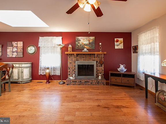 This charming ranch home sits on a large, wooded lot with plenty of privacy and a big concrete patio to enjoy the outdoors. The driveway fits multiple cars to prevent on-street parking. Enter the living room to the cozy wood-burning fireplace barely used, which had the chimney lined approximately 8 years ago. The dining area has a beautiful skylight that lets in lots of natural light. The kitchen is very functional, and you'll love how it enters an enclosed porch area which offers more space to use to entertain or hang your big screen TV to enjoy the game. The full basement offers possible expansion. This home is neat and clean and a wonderful place to call home.