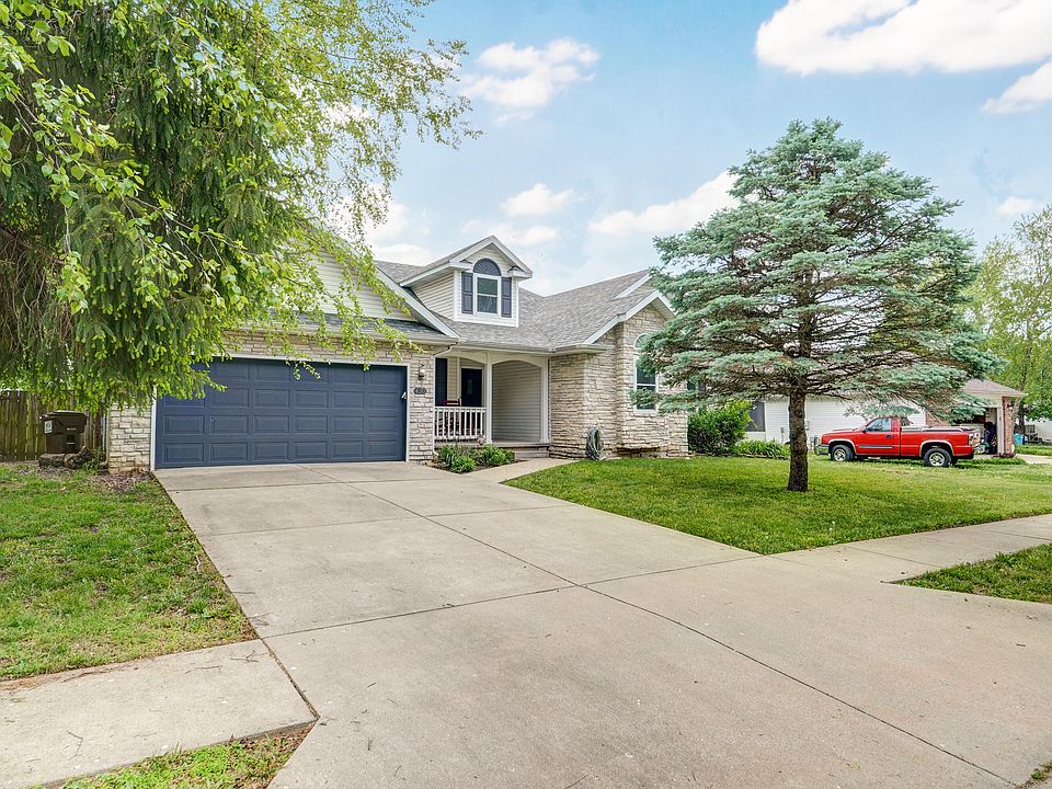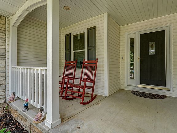 Looking for a house with a real front porch and lots of character? Look no further - Covered front and back porch, stone accents and a dormer window entryway providing the wow factor as soon as you enter! Decoration possibilities are endless with cathedral ceilings, stone fireplace, ample kitchen cabinet and counter space with built in desk area and select glass doors to showcase your collectibles. House has an excellent flow, with living room opening to dining area connected to kitchen and access to back covered deck - great for grilling! All bedrooms are down the hall to the right, with large primary bedroom featuring a tray-ceilng first on the left, separated from other bedrooms by the en-suite bath and walk-in closet. All new windows and roof replaced in 2020. Mature trees provide shade, while still having plenty of space to plant a garden in the backyard!
