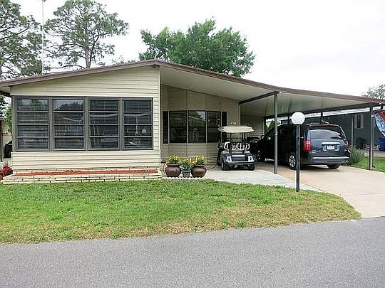 Stunning from the moment you walk in with a huge Island kitchen with granite sub counters. Lovely grade wood laminate floors, upgraded appliances, fixtures bathrooms all well furnished and move in ready. Very large storage, enclosed Florida room, brand new roof March 2015. Call Now! Comes with Golf Cart. SB1663 Over 700 homes available at https://www.fourstarhomes.com