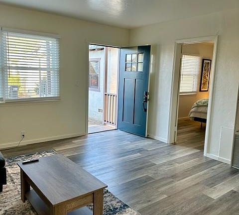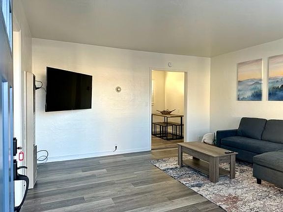 About the property- Sierra Dwellings is a private, quaint, cozy, and distinct condominium community in the heart of Bishop, California, surrounded by breathtaking views of the Sierra Nevada Mountains. The community consists of 9 separate detached dwellings with great character and privacy, and is a short drive or walking distance to downtown coffee shops, restaurants, bars, hair & nail salons, gym, and more. Sierra Dwellings is 5-minute drive to the local Hospital (1.1 miles), 1 mile to a major supermarket, a 5-minute drive to the Bishop Airport, and about 45 minutes to Mammoth Lakes. Scenic hiking, fishing, lakes, ski resorts, and historical sites are plentiful! About the condo- This detached condo features a completely remodeled and upgraded spacious 1B/1B 620 sq ft unit. This fully furnished farmhouse/modernized unit has ALL NEW: front and back doors, patio railing and window trim, kitchen cabinets, kitchen countertops/sink/fixtures, stainless steel refrigerator, GE gas range/oven, full size washer and dryer, LVP flooring in entire unit, light fixtures, bedroom fan, window blinds, toilet, shower walls, bathroom vanity/sink/faucet, baseboards, and new paint corner to corner ceiling to floor. As a fully furnished unit, this condo features NEW: queen bed, bedroom furniture, dining table/chairs, rug, sofa, coffee table, lamps, Smart TV, and the necessary essentials (i.e. dishes, silverware, bedding, towels, small and large appliances). Bills included/Landlord pays: water/sewer, trash, and landscaping. Tenant pays: electricity (LADWP), propane gas (Eastern Sierra Propane), and internet (Optimum). 2 assigned off-street parking spots in front of home and 1 spacious on-site storage are included. There is also a new in-unit full size side-by-side washer and dryer included. Please respect the privacy of the community. There is not an office on-site. Contact the Property Manager for inquiries or needs. SIERRA DWELLINGS APPLICATION ONLY (NOT ZILLOW'S). BACKGROUND CHECK THROUGH SIERRA DWELLINGS ONLY. PLEASE EMAIL SIERRADWELLINGS@GMAIL FOR APPLICATION AND INFORMATION. Security deposit to secure the unit and 30-day notice to vacate is required. $250 move-out professional cleaning fee will be charged upon moveout. Application fee and background check fee is non-refundable. No pets/animals/reptiles. No smoking/vaping inside of the unit. No more than 2 adults + 1 child can occupy the 1-bedroom unit. Minimum income and credit score is required. 1-year lease is required. Landlord pays: water/sewer, weekly trash pickup with unit's own receptacle, landscaping. Tenant pays: electricity, propane gas, internet/cable services.