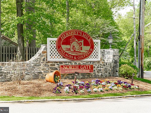 Enter this classic end unit Hersheys Mill, one floor living home and prepare to be amazed by the abundance of natural light, architectural features, and pastoral setting. Introducing 430 Eaton Way, one of Hersheys Mill “Best Dressed Addresses.” This Marlborough model home is an oversized, 3 bedroom and 2 full bath home nestled on a beautiful, waterfront lot that sits right on the golf course. This home has a one car garage, steps from the entrance. The entry, a tiled foyer guides you through this effortless, one floor living floorplan. Straight ahead you’ll find a sun filled formal living room complete with a wood burning fireplace, wood mantel featuring intricate dental molding, glass firebox doors and a slate hearth. The formal living room also offers shining hardwood flooring, elongated windows and a slider leading to a patio with awning perfectly welcoming the beauty of the pond, golf course and cart path. Off the living room you make your way to the distinguished oversized formal dining room that is conveniently adjacent to the “Gourmet Kitchen.” Every gourmand’s dream! The Kitchen has an abundance of cherry cabinets, tiled backsplash, Corian counters, 2 skylights, island with a bar sink, The kitchen has breakfast seating next to a large window with window seat. The stairway to the massive, unfinished lower level is conveniently located off the kitchen. Off the foyer are 3 nice sized bedrooms, two full baths and a laundry room. The primary bedroom has a bath ensuite and two walk-in closets. 430 Eaton Way located in Eaton Village has its own village pool, a nice quiet place to cool off in the coming summer months. Experience the peace of mind of a gated community with 24-hour on-site security, complete landscaping services and in the winter enjoy street, driveway and “to your door” snow removal. There’s lots to do in Hersheys Mill, just pick your hobby or exercise routine, you’ll find it here. Make 430 Eaton Way yours today! All room sizes are estimates. Buyer should do due diligence for room sizes. Eaton Village Capital Contribution Fee to buyer: $3800 and Master Contribution Fee to buyer: $2039.64