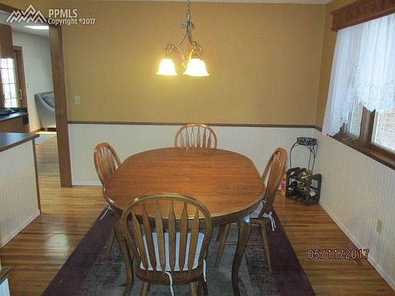 Large Ranch home located in demanded area near UCCS, CSCS University Village. Hardwood floors, Pella Windows, Attic Fan, wood fireplace and full finished basement. Beautiful fenced backyard with shed, fire-pit, covered back patio, mature trees, nicely landscaped. Great home, lots of storage, awesome game room, separate dining room, large rooms, must see !