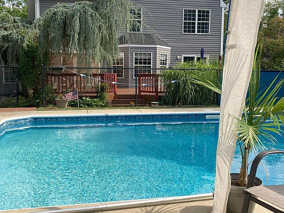 This highly desirable Swan Pointe home, situated directly across from Core Creek Park, boasts numerous recent upgrades, including a new roof, siding, gutters, and gutter guard in 2023, as well as a new heating and air conditioning system and electric panel installed in 2024. Upon entering, a welcoming hallway with hardwood floors introduces the home's refined interior. The formal living and dining rooms, adorned with plush carpeting and custom moldings, exude classic elegance. The updated and spacious eat-in kitchen is a chef's delight, featuring 42-inch upper cabinets, a tasteful backsplash, hardwood flooring, and cherry cabinetry. Stainless steel appliances and a built-in microwave, making the kitchen the heart of culinary creativity and family gatherings. NOTE: Owner is a licensed Real Estate Broker The inviting recreational room, with hardwood flooring and custom wood-burning stone fireplace, complete with a stone mantel and hearth and enhanced by recessed lighting, beckons relaxation. A sliding door from the dining room leads to a large deck, offering tranquil views of the expansive backyard and in-ground pool (liner and filter replaced in 2016, pool pump in 2023). Convenience abounds on the main level, which includes a powder room, a laundry room equipped with a washer and dryer less than a year old, and direct access to the 2-car garage. Adjacent to the garage is a 16.5 x 7 bonus room with an exterior entrance that can serve as office space or additional storage. Upstairs, the freshly painted master bedroom features its own sitting room, a walk-in closet, and a large, remodeled bathroom with a granite vanity, decorative lighting, mirrors, a stall shower, and tile flooring. (The sitting area can be easily converted back to a fourth bedroom.) Two additional spacious bedrooms, each with ample closet space and carpeting, provide comfort for every family member. The second level is completed by a hall bathroom featuring a new vanity, tub/shower, vinyl floor, and hall linen closet. A finished basement offers additional living space and a large storage room.