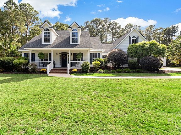 Tucked away on 5.44 serene acres at the end of a quiet Lowcountry cul-de-sac, this beautiful four-bedroom estate offers the perfect blend of Southern elegance and peaceful country living. A gracious tiled front porch welcomes you into a warm, inviting interior filled with timeless details—gleaming hardwood floors, a formal dining room framed by classic columns, and a cozy living room centered around a gas fireplace.