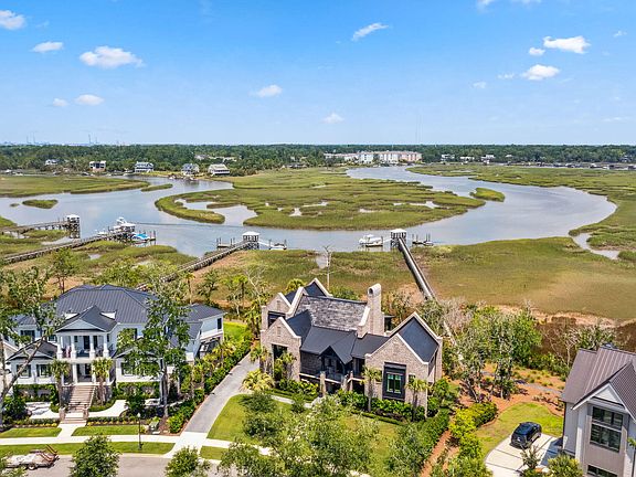 Deep Water Dock and Full Golf membership opportunity. *4865 sqft heated space, 3300 on main level'' once in a lifetime opportunity to reside in a home that feels like pure magic on ''Fish Tale Island'' a small private enclave on Daniel Island's park side. 430 Fish Tale is a custom masterpiece by the Damien Busillo/Roy Mahshie team who took the owner's vision to create something truly special to the very highest standard of quality, craftsmanship, design, functionality and whimsy to another level. The finest finishes prevail and green energy rule this home. Features Include; Tesla roof w/ 2 Tesla power walls, multiple wine rooms, elevator, putting green, all turf backyard; master wing with ''wet room' and radiant heat floors, garage for 5+ cars and ample storageexterior gas heaters and retractable screens, salt water heated pool/spa. Custom architectural front door, smart home technology throughout, sound system, elevator. Two guest suites, featuring a separate full-size washer, dryer, microwave, dishwasher, refrigerator, freezer, and private access. 890 sq ft game room on the first level with walk out entertainment and putting green. Seeing is believing at 430 Fish Tale. (Sketch available for a proposed additional 1100 sq ft of living, adding an additional guest suite and office/gym which would bring total to 5965)