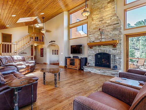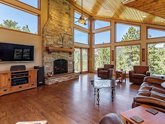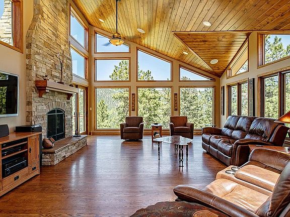 Call Julie!! for a personal Showing 303-848-4796. You are going to absolutely love this amazing home on 3 acres in the desirable Gatewood Neighborhood less than an hour drive from Downtown Denver. This wonderful home features over $340,000 of renovations which includes a luxurious custom kitchen with coffee glazed maple cabinets, granite countertops, stainless steel Thermador appliances including a gas cooktop, dual ovens, warming drawer and microwave, walk in pantry and slate tile floors. The home has an expansive living room that features hardwood floors, a vaulted tongue and groove wood ceiling, a breathtaking custom gas fire place with beautiful stacked stone that extends all the way up to the 17 ft. ceiling, soaring windows that fill the room with an abundance of natural light and showcase the jaw dropping views. You will also enjoy the magnificent views from the floor to ceiling windows in the kitchen and the large windows in the dining room. The kitchen and family room both open up to a massive high-end maintenance free composite deck that stretches across the entire back of the home. The expansive deck is perfect for outdoor entertaining with premium Klipsch speakers and a built-in gas firepit to keep you warm on a chilly night. Klipsch speakers are also installed in the living room and kitchen ceilings and the entire house is wired for sound. This home has a walk-out basement with a large family room that is the perfect rec space along with a gas fireplace. This home has a 4-car oversized attached garage with plenty of parking in the driveway for when all of your friends and family come to visit. There is a ton of storage for all your outdoor gear including a large storage room above the garage. This spectacular home is the perfect mountain oasis. It screams Colorado from the inside out!
