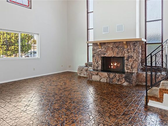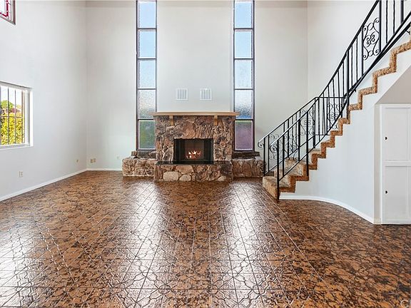 Wonderful, Spacious Home with Large Formal Living Room featuring stone fireplace and wetbar, Separate Dining Room, Kitchen with corian counter tops, Family Room with fireplace. Three bedrooms downstairs; one with en-suite bath, plus one more full sized hallway bath. Oversized Upstairs Master Suite with stone fireplace, walk-in closet and linen closet, Master Bath with dual sinks, tub/shower. Upstairs Bonus Area overlooking formal living room. Interior newly painted. Converted garage which can easily be put back to a two-car garage. Large backyard with covered patio, fruit trees, and lots of space to create your dream yard for entertaining.