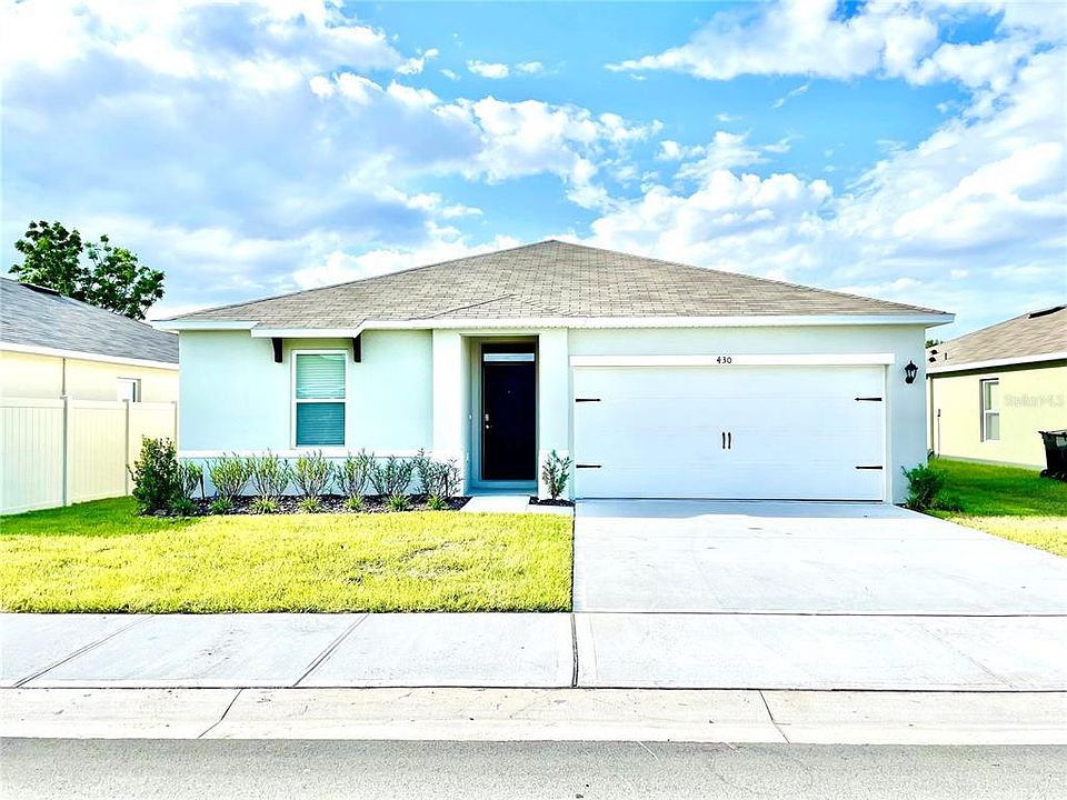 Beautiful BRAND NEW 4 bedroom 2 bathroom home with large back yard! Location, location, location. Taylor Hills is close to Posner Park, I-4, shopping, dining, hospital, Publix, etc. The open concept kitchen has stainless steel appliances and a breakfast bar for causal dining in the mornings, or brunch on the weekends. The kitchen, living room and dining room look out onto the spacious back yard with boundary fence around the community giving you extra privacy. Split floor plan with 3 bedrooms at the front of the house and the primary bedroom and private ensuite bathroom at the back. Primary bathroom has a large shower and a walk in closet! The other three bedrooms are spacious with plenty of closet space! Two car garage for cars or extra storage. Irrigation system to keep your lawn looking beautiful. Everything is brand new for maximum efficiency to keep your energy costs low. This property is clean and bright and is ready for you to call it home! Rent includes monthly AC filter replacement. 24/7 maintenance provided by Blue Sky Property Management.