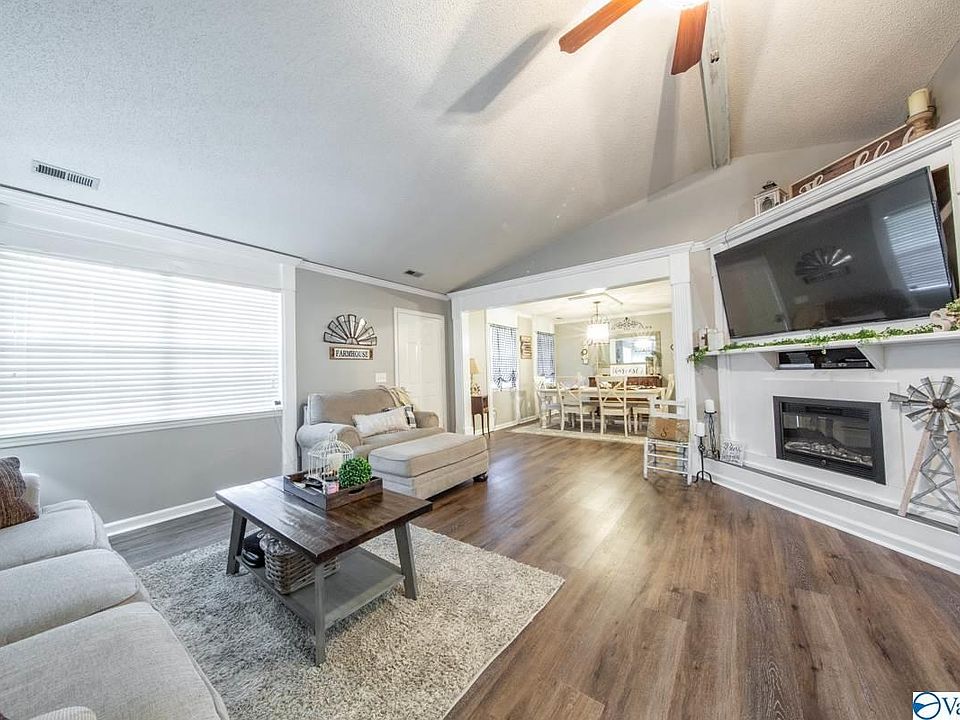 WOW! Bring the rocking chairs and make this gorgeous, farmhouse style rancher yours! Beautiful inside & out and easy commute to downtown Huntsville, Redstone & Facebook Data Center. Over 1/2 acre lot & 400 sq.ft. workshop! Extensive moldings, shiplap & LVP. Greatroom boasts a vaulted ceiling, fan, & fireplace. Kitchen features a farm style sink, SS appl's, pantry w/barn door, & breakfast nook. Formal dining room is great for entertaining. Relax at the end of the day in your secluded owners retreat. Soak in the garden tub or curl up with a book on the window seat by the fireplace. Additional det building w/power. Private backyard w/vinyl fence. Per seller HVAC approx 6 yrs. old & Roof 2012.