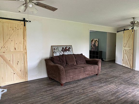Rare find!!! 8 ac w/large shop and 3BD/2BA home just outside the city limits! Home sits back off the road in a setting of large shade trees. There is a pasture with small pond that fronts the road where you can have your animals. Back area is like a park! There is a large shed that does need some TLC in order to be usable and also a large 4' chain link fenced area near the house. Size of the shop is approx 30X48.