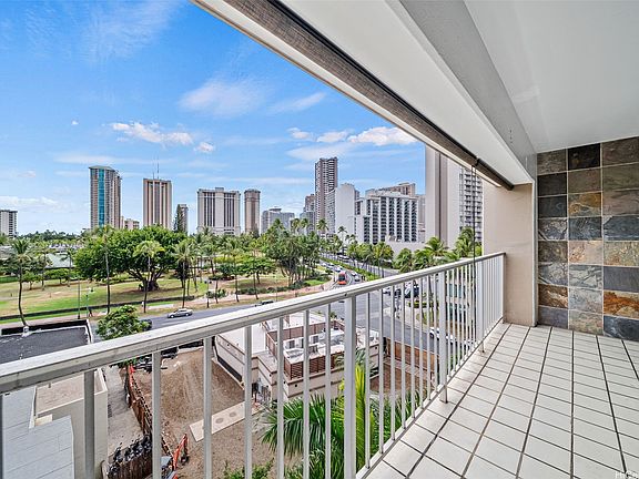 Experience the Waikiki lifestyle in this bright 2-bedroom, 1.5-bath condo at Keoni Ana, just moments from world-class beaches, dining, shopping, and vibrant nightlife. Floor-to-ceiling sliding doors open to a spacious lanai overlooking Fort DeRussy Park with sweeping skyline and sunset views—perfect for morning coffee or evening unwinding. Inside, updated bathrooms feature slate tile flooring, with the primary bath offering a Japanese Ofuro soaking tub for spa-like relaxation. The functional kitchen with granite countertops and stainless steel appliances flows seamlessly into the open living area, filled with natural light. Warm laminate flooring runs throughout the living spaces and bedrooms. Additional highlights include in-unit laundry, split A/C, and one covered parking stall. Located on a quiet, tree-lined street, Keoni Ana is within walking distance to Waikiki Beach, Ala Moana, and an array of shopping, dining, and entertainment options—including a vibrant food truck venue right across the street for casual eats and local flavors. Building amenities include a walking/jogging path, resident manager, and building security.