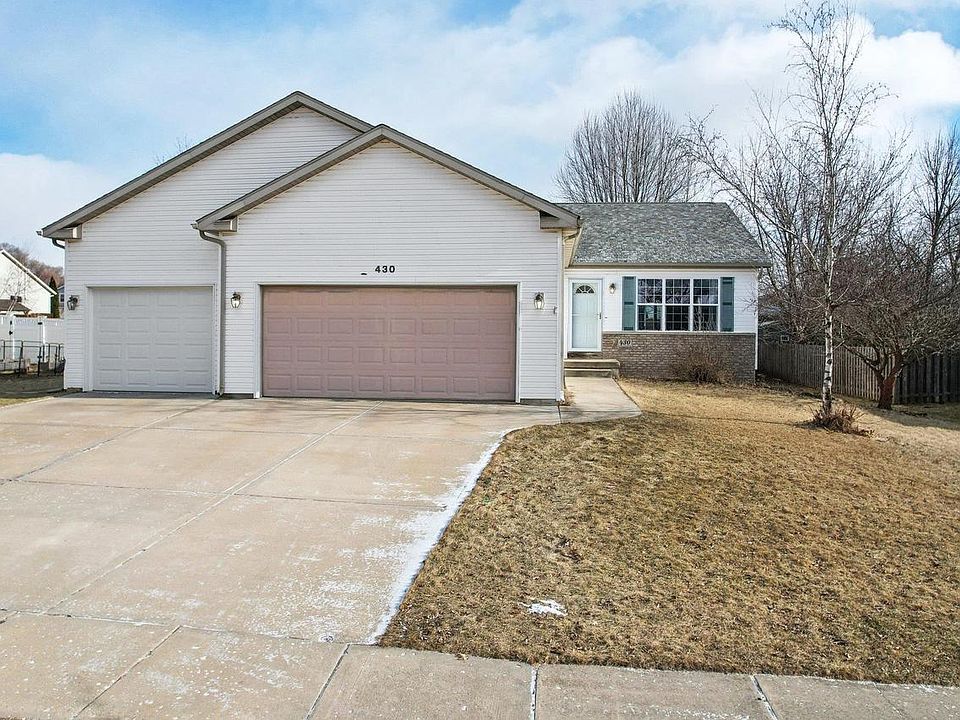WELCOME HOME to Deer Valley in Deerfield. Ranch floor plan with lots of windows offering tons of sunlight. Vaulted ceiling in living room with fireplace. Primary has new bathroom with walk in shower and walk in closet. Main bathroom also has new tub/shower combo. AWESOME 3 car garage with ramp entry which can easily be removed if needed. Lower Level has 1/2 exposure windows and ready to finish and has 1/2 bath already completed and crafting area w/ cabinets. UHP Ultimate warranty $825 included, Kitchen appliances new in 2020, Washer 2020, Dryer 2024, Softener 2023, Roof 2023, fireplace cleaned and serviced 2024. Seller leaving 2 ladders & yard tools in garage. 10 x 10 deck and partially fenced yard.