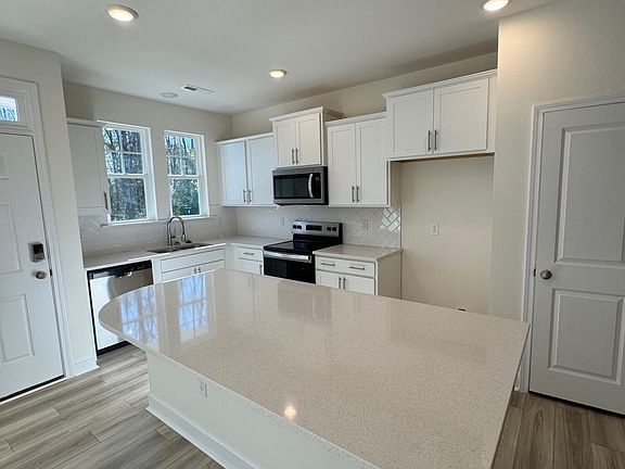 NEW HOME FOR 2025! Gorgeous Low-Maintenance Townhome Community in the Heart of Wendell! This Rochester Townhome has Luxury Vinyl Plank throughout first floor & wet areas upstairs. Upgraded carpet on stairs and living areas upstairs. Open wooden railing on first floor and half wall along stairs on second level. Electric appliance package. Divided Bowl undermount sink in kitchen. Quartz counters and White Cabinets throughout. Tiled backsplash in kitchen. Tile shower in primary bath. Fiberglass shower/tub combo in bath 2. Single car rear entry garage and driveway.