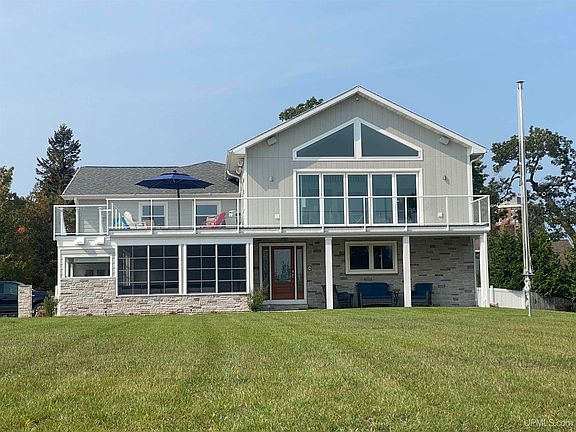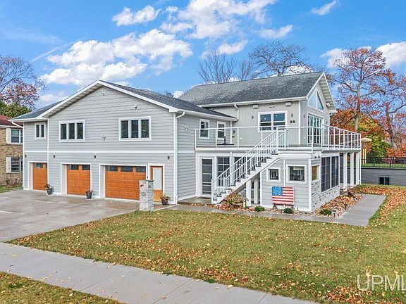 Originally built in 1962, this home underwent a complete transformation in 2020. The renovation took the entire structure down to the studs, with over half of the home newly built and added during the remodel. Luxury Lake Shore Drive Home with Panoramic Views & Unmatched Design. Experience the ultimate in Escanaba water view living on one of the corner lots along Lake Shore Drive. This three-bedroom, three-full-bath home offers panoramic views of Little Bay de Noc from the sunroom, living room, and third-floor loft, combining elegance, comfort, and modern luxury. Located directly across from Ludington Park, enjoy walkable access to volleyball, pickleball, basketball, tennis courts, the bandshell, playground, fishing, harbor, boat launch, and public beach — as well as Music Mondays, food trucks, and community events throughout the summer. The open-concept kitchen, dining, and sunroom areas are designed for entertaining. The kitchen features custom shaker cabinetry, granite countertops, tile backsplash, large pantry, gas stove (also wired for electric), double oven, island with bar seating, and stainless steel vent hood. The dining room has full-wall windows on two sides for natural light, while the sunroom boasts a cathedral ceiling, floor-to-ceiling glass, full bar with ice maker and wine/beverage fridge, and 16-foot sliding doors opening to a 15 foot screened opening to the second story deck with custom glass railings blending indoor and outdoor living seamlessly. The Primary Suite is a private retreat with an oversized walk-in closet with custom built-in cabinetry and heated floors. The luxury bath includes heated ceramic tile floors, dual quartz vanities, a 6x8 steam shower with ceramic tile surround, heated floors, 4" bench, speakers, colored lighting and steam shower. The guest or family suite, separated by a private door, features a bedroom, linen closet, and full bath with ceramic tile shower and heated floor, oversized jetted tub, and shower bench, offering comfort and privacy for visitors. The garage level includes a large family room, mudroom, office, and a full bath with sauna featuring traditional and infrared heat, along with shaker cabinetry and countertops, perfect for family living, productivity, and relaxation. Three-car oversized heated garage, insulated, finished, and waterproofed, LP Smart Siding, security system, central vac with hide-a-hose, built-in sound system, and sprinkler system. 3 season outdoor kitchen and patio, ideal for entertaining This home perfectly balances luxury, comfort, and location, offering a seamless blend of indoor and outdoor living, high-end finishes, and unmatched panoramic views — all in the heart of Escanaba’s most active and scenic neighborhood.
