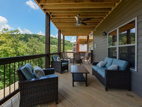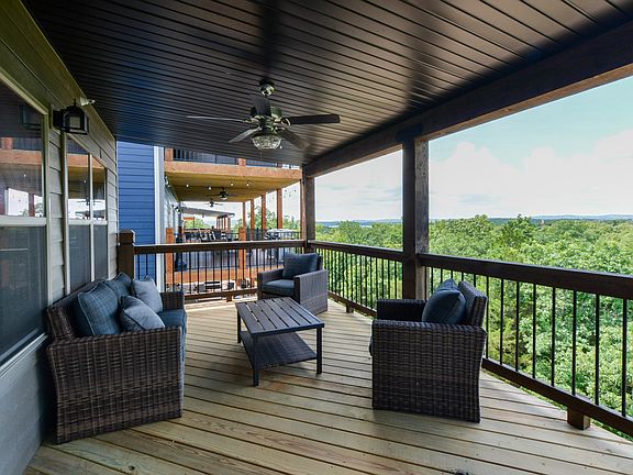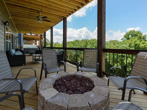 Are you looking for a turn-key lakeview, luxury 9 bed 9 bath vacation rental with a proven track record of bookings? A great deal of attention to detail went into the building and design of The Blacksmith Hammer Lodge. The island has been extended, the fireplace and fire pit have been updated to propane; the floor plan is very spacious with two large living rooms that walk out to extra-long decks. There is also a set of stairs on the exterior of the house that runs to the lower-level deck that holds the large hot tub. If you have been to Chateau Cove, you know the exterior stairs is a special feature that allows easy access from the outside to the lower level. There are many more extras in this house than the average vacation rental. There are a full set of extra towels and linens, extra kitchen items including two crockpots and two griddles, Christmas tree and decor, and even Nintendo ''nook'' upstairs. Here are even more extras--pack n play, booster seats, two gas grills with extra propane tanks, lockboxes with extra keys, two washers and dryers, two refrigerators, two dishwashers, double oven built into the cabinets, etc. In addition, it sleeps 26! This has been a mostly hands-off property for the owners because of the systems they set up for the guests. This development has designated parking spaces for each unit plus extra spots! There is an indoor and an outdoor pool area and playground for the littles. And don't forget about the lake view. In fact, you can literally walk to the lake on the lake trail which is just below this house. Owner is Listing Agent.