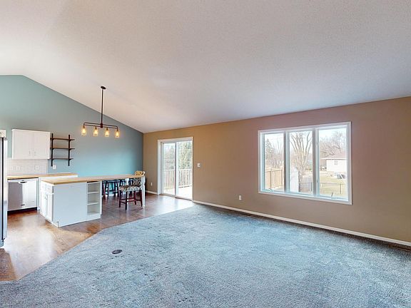 Move-in ready 4 bedroom, 3 bath ranch style home in the charming town of Zumbrota! Step into the sun-filled living room with vaulted ceilings and large windows to let the sun flood in. The kitchen boasts hardwood floors, stainless steel appliances, a beautiful tile backsplash, a pantry, and a movable island! The primary bedroom is sure to please with a walk-in closet and private ¾ bath with stunning tile work in the shower. The laundry is conveniently located on the main floor. The lower-level walk-out offers a spacious family room with a cozy fireplace, two additional bedrooms, and lots of storage. Large, flat backyard completely fenced in with the added storage of a shed. Enjoy summer evenings on the maintenance-free deck, which is great for entertaining. Heated 3-car attached garage! Newer Furnace and A/C (2022), water heater (2021), and water softener (2018). Just a short distance to Rochester and an easy commute to the Twin Cities. Pre-Inspected!
