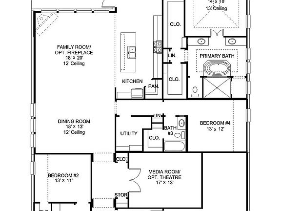 Home office with French doors frame the welcoming entry. Large media room just off the extended entry. Open concept family room with a wall of windows extends to the kitchen and dining area. Island kitchen offers built-in seating space and a corner walk-in pantry. Morning area with wall of windows. Secluded primary suite with a wall of windows. Primary bath features a double door entry, dual vanities, garden tub, separate glass enclosed shower, linen closet and two walk-in closets. Secondary bedrooms with walk-in closets. Covered backyard patio. Mud room just off the three-car garage.