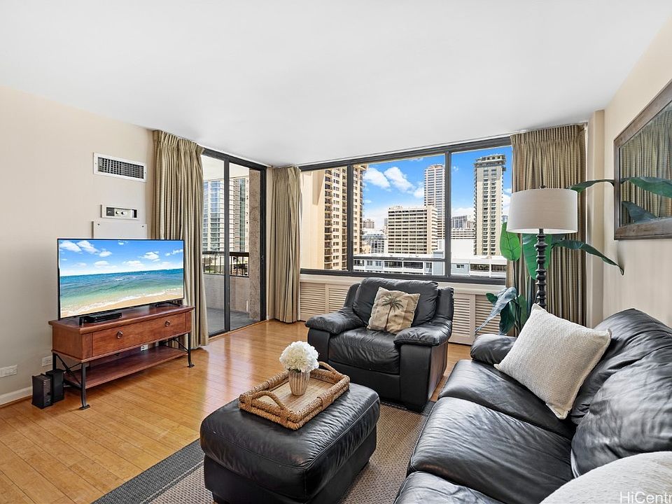 Welcome to your Hawaiian dream home in the highly sought-after Aloha Towers! This nicely upgraded, fully furnished, move-in ready, 1 bedroom condo offers a comfortable and exciting lifestyle. This unit features granite countertops in both the kitchen and bathroom, cherry color cabinets, bamboo flooring throughout, and in-suite washer/dryer. Relax and unwind with breathtaking ocean and city views from your spacious lanai. Aloha Towers is pet friendly and has 24-hour security. Amenities include 2 heated pools ( Ewa & DH Towers), whirlpool, sauna, and barbecue areas, ample guest parking and a popular mini-mart on the ground level for your convenience. Experience the best of Waikiki with easy access to beautiful beaches, variety of restaurants, trendy shops, and vibrant entertainment. Don’t miss the opportunity to own this slice of paradise in Waikiki! Contact me today!
