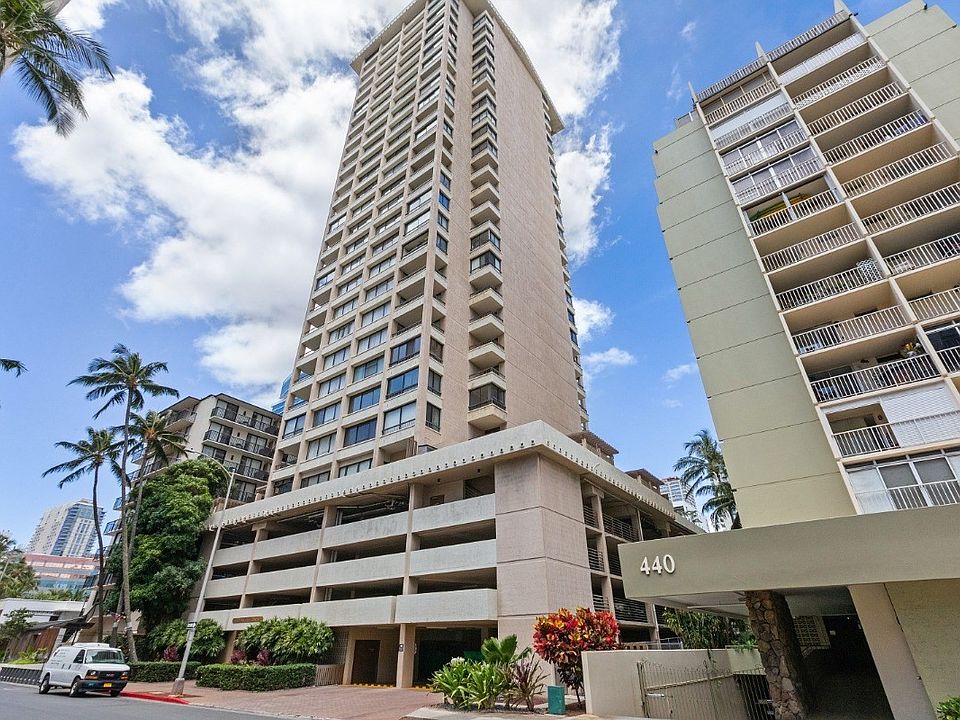This wonderful 2bd+2ba high floor unit offers a fantastic opportunity for a DIY looking for a great value. Similar floor plan units in the same building have recently sold for over a hundred thousand more. The spacious apartment is a "Blank Canvas" waiting for you to create a masterpiece! The unit is already gutted, prepped & primed and ready for you to commence improvements. The building is just a short walking distance to world renown Waikiki Beach and world class boutiques, restaurants, bars, live entertainment and more! Highly desirable amenities are already there and include a BBQ area, warm pool, outdoor shower, bathroom facilities, whirlpool jacuzzi, dry sauna plus open space sitting deck under the stars. This is a secured building with on-site security patrol and keyed access and includes 1 covered parking space. There are two elevators. Please consult with licensed/accredited renovation experts and coordinate with any building, government and HOA requirements. Buyer to do their due diligence. Unit being sold "As-Is”. There is another 1bd/1ba also available on the same floor that may fit in as an additional purchase.