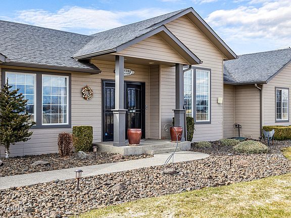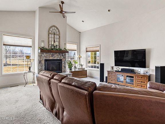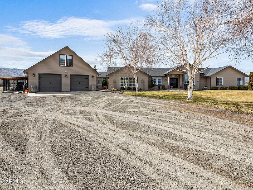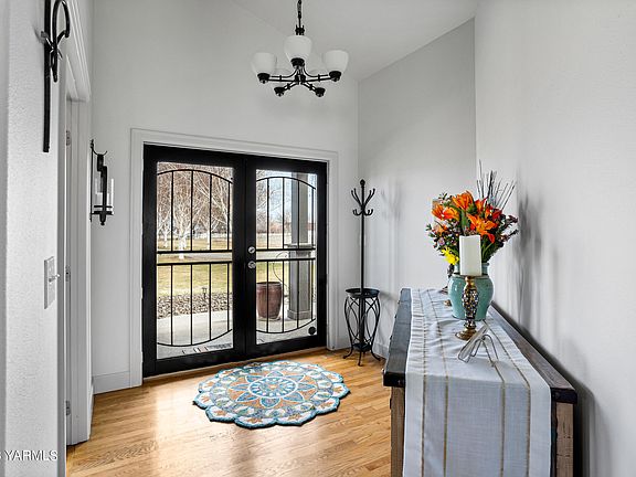 If you have been looking for tranquility and beauty in the country then you have found your home. At the end of a private road, you enter this delightful property that welcomes you as you drive through the 14 birch trees on both sides of the driveway, and you know that you are home. This gorgeous home that has had numerous updates sits on just over 8 acres of land. About one acre of land is the home and fully landscaped with a fenced backyard, nearly 2 acres of the property is fenced pasture, and close to 5 acres are barley/alfalfa. The property receives irrigation water from Ahtanum Creek to maintain the land away from the home. This is a very spacious one level home with a bonus room that combines to have over 3000sf. There are 3 bedrooms, 1 office, 3 bathrooms, 2 living areas, and the bonus room above the garage that can be another entertainment room or possible guest bedroom. Entering the home you will appreciate the vaulted ceilings in the living room and fireplace that provides a cozy space to relax but still be connected to the kitchen area with its open concept. And the kitchen sure is dazzling with stylish countertops that mesh perfectly with the classy cabinetry and stainless-steel appliances. There are ample cabinets and storage, along with a large kitchen island to cook at or enjoy the food, but there is also a pantry big enough to store food for months. Also, the kitchen has under cabinet lighting, double ovens, a bar area and wine fridge. Open to this area is a dining space as well. Off the kitchen and dining room is another large living area that can be used for additional dining or a place to hangout when it comes time to entertain, and there is a bathroom near for guests. Down the hall are 3 bedrooms and 2 bathrooms. With one of the bathrooms being the main bathroom for the residents living in in those two bedrooms.