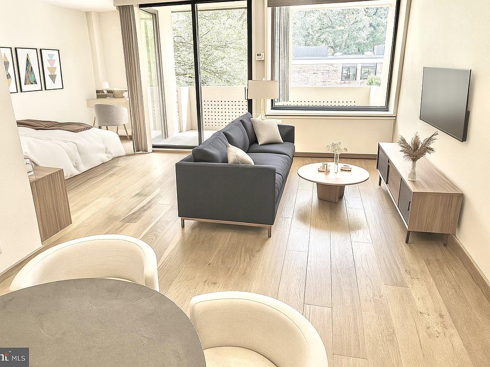 Fab Studio with balcony! Tiber Island N203 offers a fabulous open floor plan with spacious living spaces, and a wall of windows and sliding doors that open to a large east-facing balcony. New floors, new paint, new updates, and custom closet. Kitchen offers new fridge, under cabinet lighting and pantry. Natural eastern light envelopes the spaces. Storage to spare. Pets allowed. Don't miss this opportunity to own a piece of SW Waterfront. The monthly co-op fee of $956.66, includes property taxes, utilities, cable/internet, and more. Tiber Island co-op also offers 24-hour concierge, on-site management, fitness rooms, carwash, outdoor pool and bbq grills, rental storage, and community laundry facilities. Near shopping, Metro, Arena Stage, and museums. Explore the Wharf entertainment district, or take quick jaunts to other nearby attractions such as Yards Park, Penn Quarter, Capitol Hill, Georgetown, Arlington, and Alexandria. Commuting is a breeze with easy access to I-295, 395, 695, Rt 66, and Rock Creek/GW/Suitland parkways. Connect effortlessly to Metrorail, Virginia Railway Express, Amtrak, and National Airport. Approx. 515 sf per co-op records. Unit size and floor plan references are approximate and should not be used for valuation. Some photos are virtually staged. FAQs: • New owners must occupy as primary residence and file a Homestead Exemption in the District of Columbia. • Ownership cannot be taken in an LLC or corporation. Owners must be natural persons or a trust of the occupant. • Tiber Island Cooperative Homes requires all cash purchasers to obtain a cash evaluation letter as part of the Board Approval process. • Two pets are allowed per unit. • Laundry is in the basement; w/d CANNOT be added in the unit. • Tiber Island collects an escrow at settlement equal to three (3) months co-op fees. This escrow is held throughout the owner's ownership of the co-op. • Renting is allowed after 2 years of ownership. After 4 years of renting, requests are only approved if the Board grants a hardship exception.